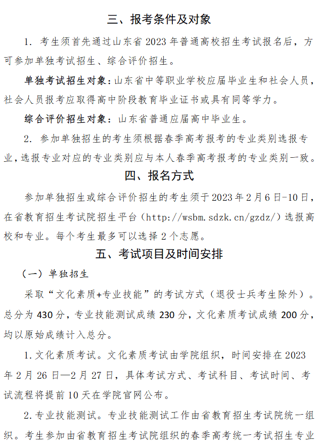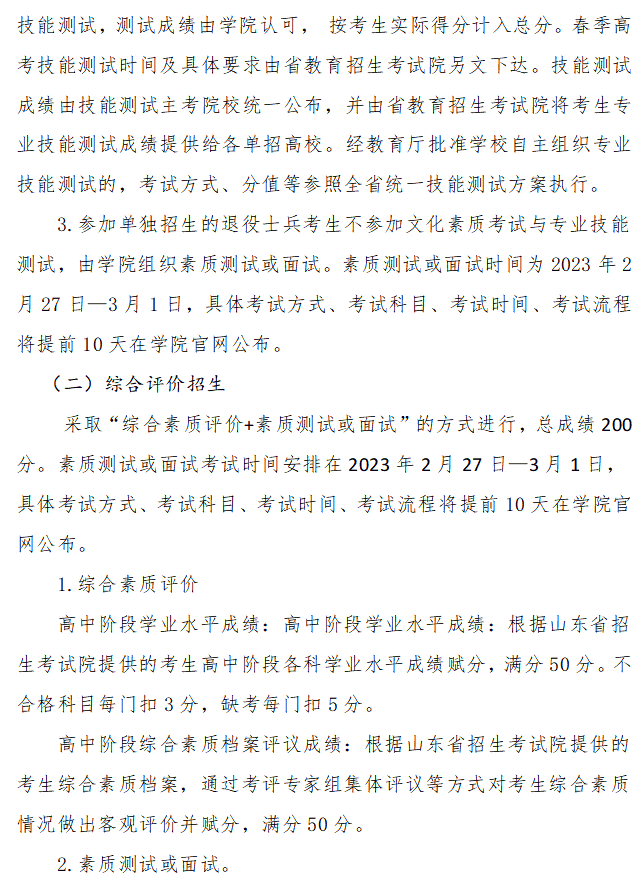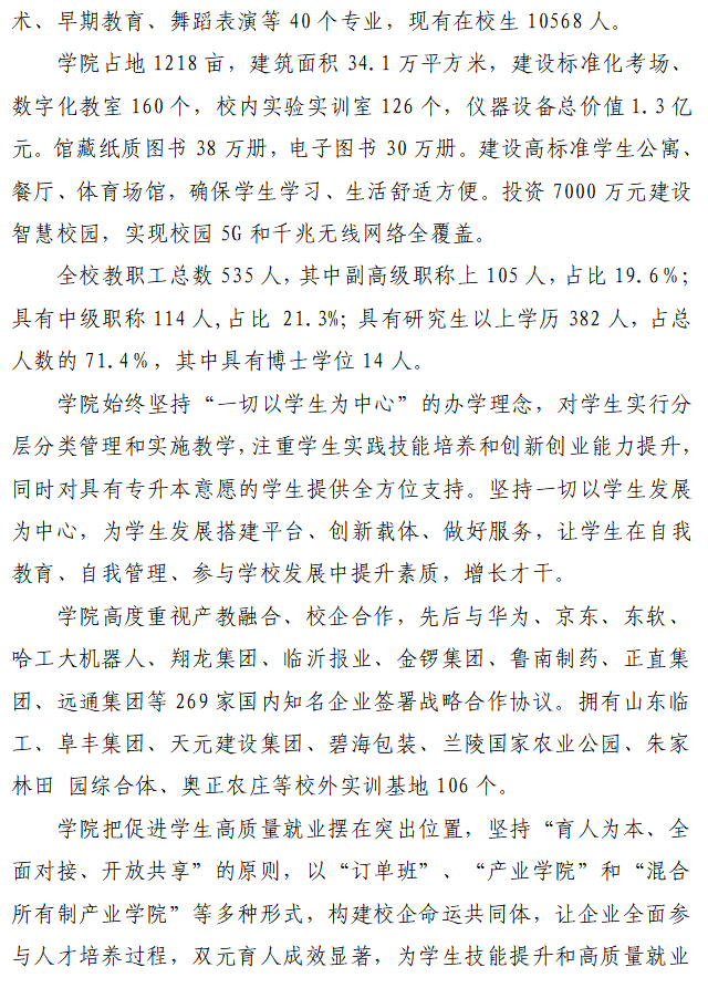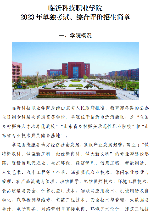 临沂科技职业学院2023年单独考试、综合评价招生简章